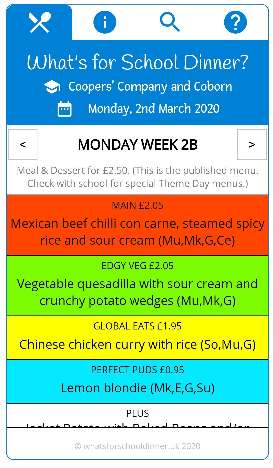 • Link to online menu. This might be a web page on your catering company website, or a pdf on your school website